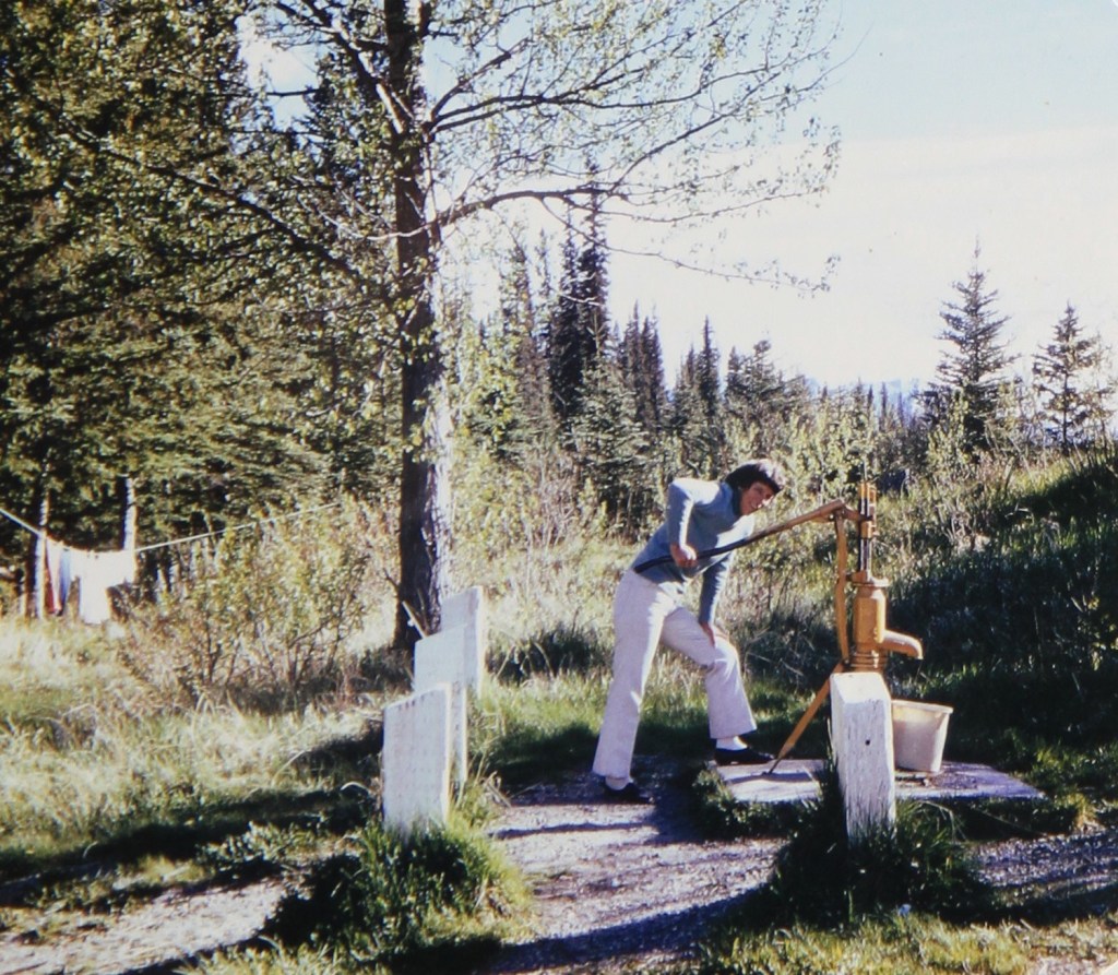 They drove through the Rockies and into Jasper National Park where the photo in Figure 197 was taken of Mum pumping water into a bucket to do some washing. Washing clothes in strange places was a feature of travelling for Mum. She loved crisp, clean clothes, but I suspect she also liked the task, especially where it could be done in exotic places. Later, when they were in the Great Smoky Mountains, she came across this little piece on an interpretation panel at an historic homestead – something that I suspect she could relate to: