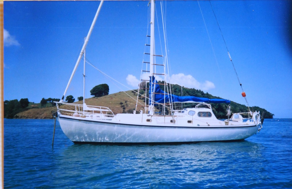 She worked away at Dad and eventually he agreed to a second Pacific cruise – going back to the Society Islands, but this time, swinging west through Tonga to Fiji. He set about finding a suitable boat. This came in the form of a yacht called Jane Rhodes, a 36-foot cutter built in 1968 by Jorgensen and Son’s in Waikawa Bay. She was built of 1.25-inch (3.2cm) single skin kauri and with a rounded Scandinavian stern. Like Cecilene, she had a full keel, which provided more stability at sea than the more modern fin-keeled boats. She was as solid as a rock, a little ‘wet’ when hard on the wind, but she could sail. She was in Nelson when they bought her in January 1984, so Mum, Dad and Pip sailed her north in February of that year. Dad wrote a feature article for the Sea Spray magazine on this trip, published in July 1984. The title, ‘Nelson to Sandspit and then…?’ speaks volumes about where Dad was in his head about another ocean cruise.