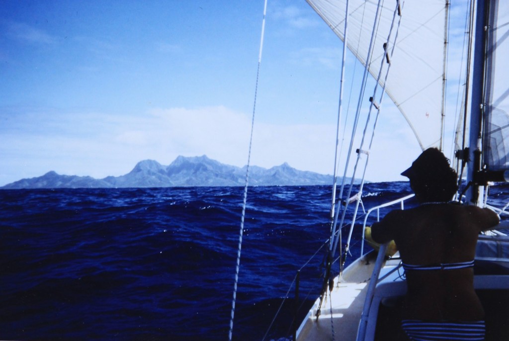Twenty-one days out, we made our first landfall at Tubuai in the Austral Islands to the southwest of Papeete. We sailed past in the evening with lights blinking in the villages and the smell of cooking fires on the air. We longed to go ashore, but the rules required that we couldn’t and that we must formally enter French Polynesia in Papeete. Four days later, we passed through the passage in the reef at Papeete and tied up, stern-to, on the waterfront in town.