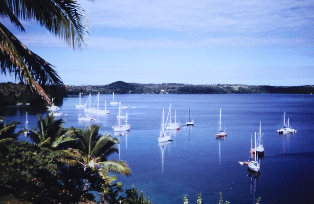 The following month was a social whirl. They were not allowed to leave their anchorage at Niefu in the run-up to the King’s birthday celebrations on the 4th of July, but this hardly seemed to matter. Fifty other yachts were at anchor with them, some of whom had also diverted from a course to Tahiti in terrible weather. The fifty lots of crew seemed to spend their days on each other’s boats, in the markets and wandering the town. They all gathered in the evenings in the Paradise Hotel for ‘Happy Hour’ and stayed there, often to the wee small hours of the morning, dancing, singing and talking boats and cruising. These sessions were occasionally interrupted by local King’s birthday events to which they all descended en masse. On the day before the birthday itself, they all participated in the inaugural Neiafu visitors yacht race.