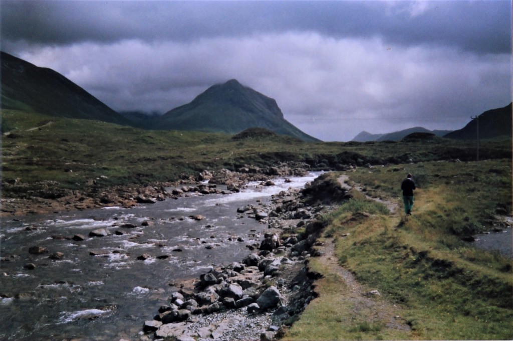 Out on Skye, the atmosphere was still dark and gloomy although green and attractive. They couldn’t quite see what sustained people other than fishing and fish farming, but Mum concluded that it was dreamer country, occupied by people who had fallen in love with the landscape. She had to admit though, it had its charms – green headland against a blue-grey sea and the Black Cuillen behind. She recalled as a child singing songs in school at Patearoa about the ‘Wild Cuillen’ and wondering what they were. ‘Well, here they are!’
